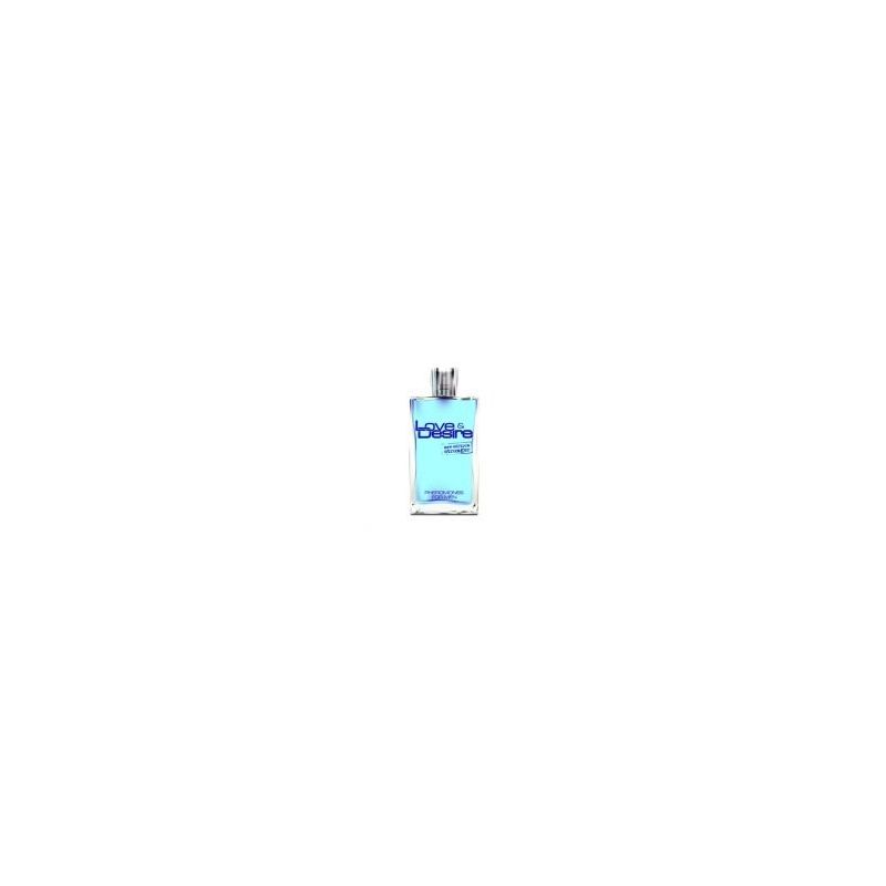 Perfum z feromonami Love Desire to niebieski płyn zawarty w szklanej buteleczce o pojemności 50ml z atomizerem. Buteleczka zamknięta jest w fabrycznym, niebieskim kartoniku.